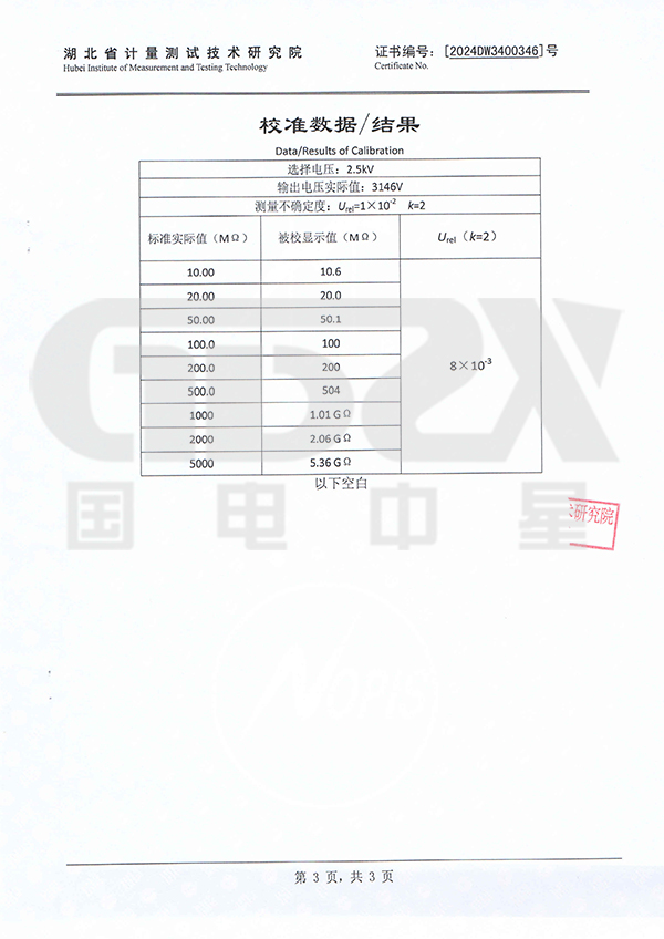 2. 測量范圍:0.1M~200GΩ